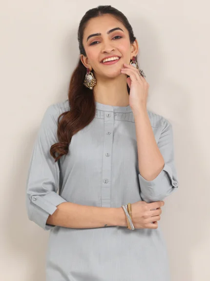 Grey Printed Silk Straight Kurta