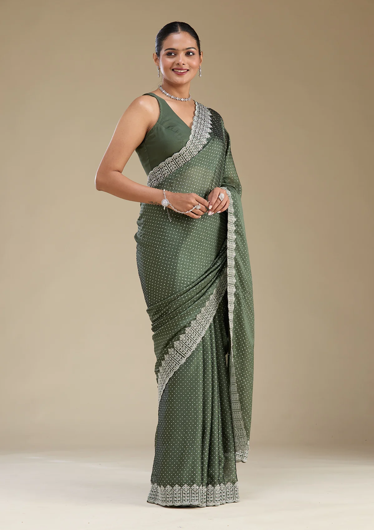 Mehendi Zariwork Satin Saree