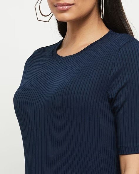 Women Ribbed Stretchable Round-Neck Top